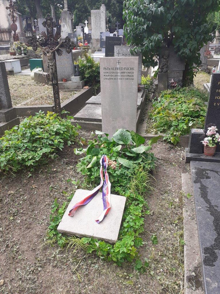 Alfred Fuchs (23. 6. 1892 – 16. 2. 1941) byl spisovatel, novinář a překladatel. Narodil se v Praze v židovské rodině. V letech 1911 až 1915 studoval na filozofické fakultě, kde získal doktorát a poté pokračoval ve studiích na teologické a pedagogické fakultě Karlovy univerzity. Od roku 1918 působil jako učitel v Ostravě na tamní průmyslové škole. Byl tajemníkem Česko–židovského hnutí. Roku 1921 konvertoval, nechal se pokřtít a začal se věnovat publicistice a překladatelské činnosti. Poté až do roku 1939 působil jako rada tiskového odboru předsednictva vlády. Od roku 1925 byl také šéfredaktorem deníku Prager Abendblatt, přispíval také do Tribuny a revue Přítomnost. Přednášel na Svobodné škole sociálních nauk, kde se roku 1930 habilitoval, a v ústavu Studium Catholicum. Roku 1929 kandidoval do senátu za Křesťansko–sociální hnutí. Byl jedním z pátečníků, pravidelně se scházejících u Karla Čapka. Po okupaci nacisty byl v roce 1939 opakovaně vyslýchán gestapem a v říjnu 1940 byl zatčen a následně umučen v Dachau. Je autorem řady odborných prací, překladů i beletristických děl. Nejznámější jsou patrně román Oltář a rotačka, studie Autorita, Zákulisí novin, Propaganda v demokracii a v diktaturách či posmrtně vydaný výbor Křesťanství a svět.
