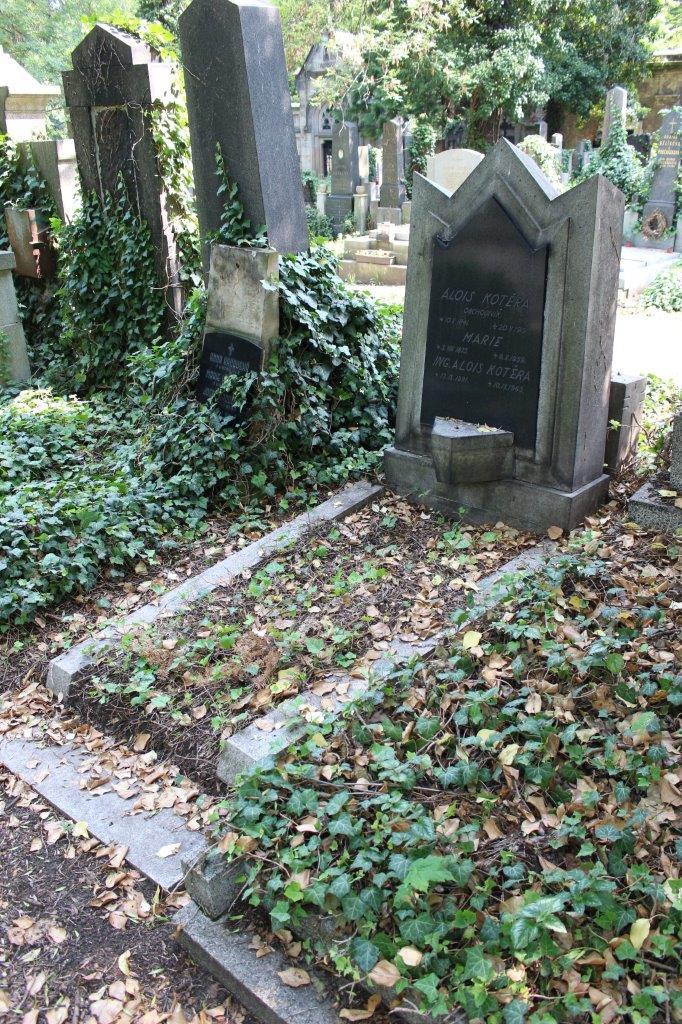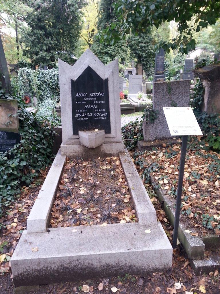 Náhrobek z broušené požárské žuly včetně kubistické konzoly s nápisovou deskou z leštěné černé švédské žuly jsou prokazatelně dílem architekta Jana Kotěry. Náhrobek určený pravděpodobně pro rodinné příbuzné byl podle návrhu Jana Kotěry realizován roku 1916.