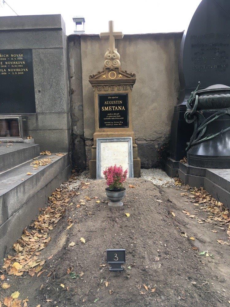 Augustin Smetana (15. 6. 1814 – 30. 1. 1851) byl kněz a hegelovský filozof. Narodil se v Praze v rodině kostelníka od sv. Haštala. Vystudoval piaristické gymnázium a po dvou ročnících studia na filozofické fakultě Karlo–Ferdinandovy univerzity v Praze roku 1832 se stal novicem řádu křižovníků a nastoupil studium teologie. 29.října 1835 vykonal řádové sliby. Studium teologie dokončil roku 1836. Rok nato složil rigorózní zkoušky z filozofie a byl vysvěcen na kněze. Protože byl několikrát povolán ke duchovní službě mimo Prahu, studia přerušoval a promoval na doktora filozofie až roku 1841. Spřátelil se s F. Exnerem, který ho výrazně ovlivnil a podnikl s ním několik studijních cest po Německu, kde se seznámil s německou filozofií. Po Exnerově odchodu do Vídně se na univerzitě stal suplentem filozofie, ale na základě své aktivní účasti v revolučním dění roku 1848 a jeho odklonu od herbartismu a příklonu k hegelovské filozofii nebyl doporučen na místo profesora a pro jeho odchod z křížovnického domu mu ani nebylo vydáno požadované vysvědčení zachovalosti. Přesto se stal roku 1848 děkanem filozofické fakulty. Poté, co byl v roce 1849 odvolán z učitelských míst, pracoval jako redaktor Palackého listu Union a také vychovatel. Roku 1850 pak veřejně oznámil, své vystoupení z církve a řádu a byl exkomunikován. Svůj život popsal v autobiografii Osudy kněze vyobcovaného z církve. Kromě ní je autorem řady úvah a studií, např. Význam současného věku či Vznik a zánik ducha. Svá díla psal německy. Jeho pohřeb na karlínském evangelickém hřbitově proběhl za velké účasti veřejnosti, studentů a profesorů filozofie, kteří za to byli voláni k odpovědnosti. Teprve roku 1900 byly ostatky a náhrobek přeneseny na Olšanské hřbitovy. Jeho život a filozofické dílo později v mnohém inspirovaly i T.G. Masaryka.