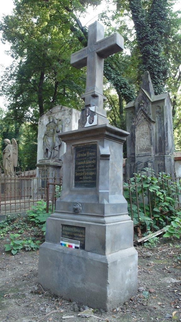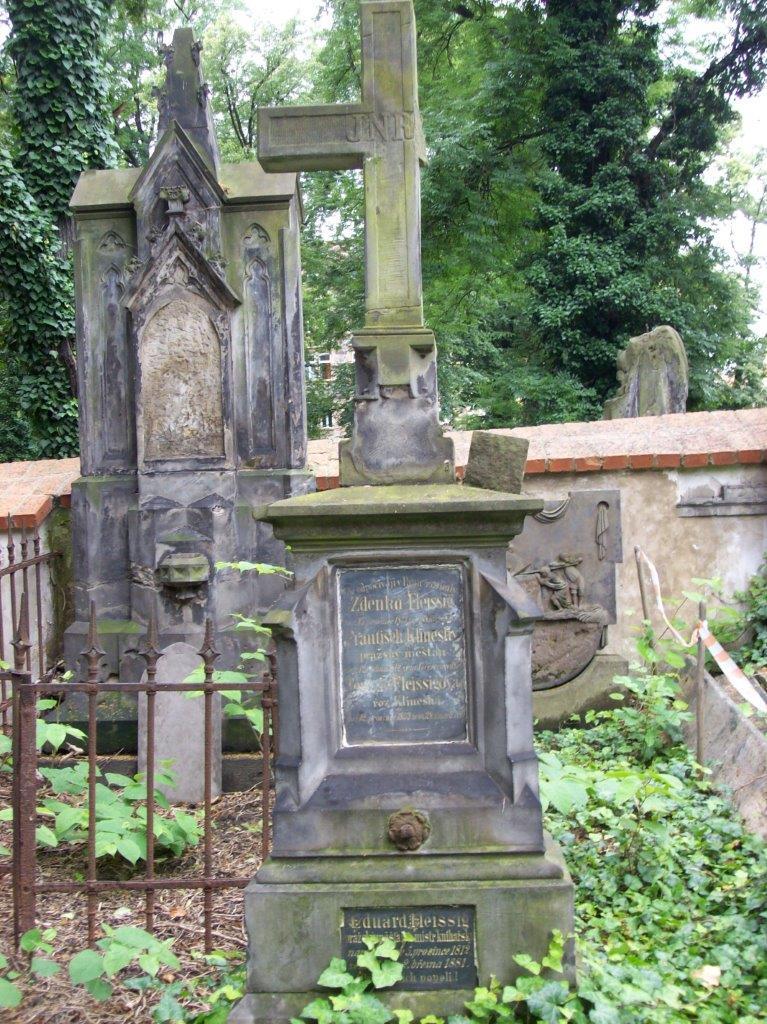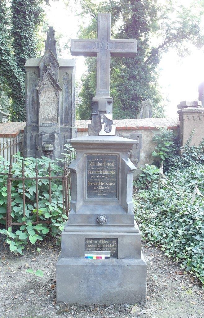 V hrobě jsou pochováni členové rodin Fleissigových a Klineských. V horní části náhrobku je uvedeno jméno pražského měšťana Františka Klineského (12. 4. 1812 – 17. 7. 1878, jeho dcery Terezie Fleissigové roz. Klineské (12. 12. 1853 – 28. 2. 1880) a jeho vnučky Zdenky Fleissigové. Tabulka v dolní části náhrobku uvádí jméno knihařského mistra Eduarda Fleissiga, manžela Terezie a otce Zdenky, která zemřela v 5 letech. Zajímavé je, že v pražských policejních přihláškách je rodina Klineských vedena mylně pod jménem Klinecký.