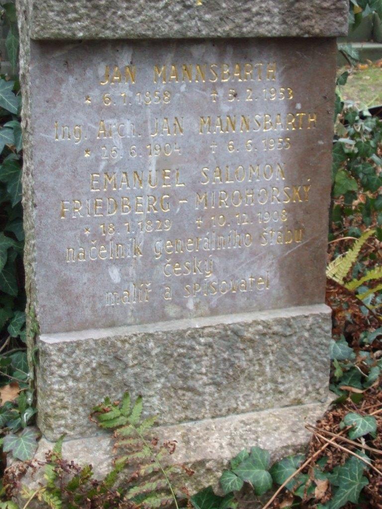 Emanuel Salomon Friedberg-Mírohorský byl polní podmaršálek a všestranně nadaný umělec: malíř, spisovatel a dramatik. Narodil se v Praze. Matka záhy zemřela, a tak se jeho výchově věnoval především strýc Moric Fialka, jehož vlastenectví mělo na synovce po zbytek života velký vliv. Studoval na akademickém gymnáziu a souběžně navštěvoval Tkadlíkovu figuralistickou a portrétní akademii. Toužil stát se malířem, ale na otcův příkaz nastoupil na Tereziánskou vojenskou akademii ve Vídni a studiu malířství se věnoval nadále už jen soukromě. Vojenskou akademii ukončil v roce 1846 jako poručík I. třídy a následně v Praze převzal velení 28. pěšího pluku. Roku 1848 se zúčastnil tažení proti vzpouře v Lombardsko-Benátsku a byl povýšen na nadporučíka. Následně se podílel na potlačení revoluce ve Vídni a v Uhrách. Roku 1849 obdržel Vojenský záslužný kříž za statečnost a byl převelen ke generálnímu štábu, kde se podílel na mapování Vojvodiny. Roku 1851 byl pro svůj talent z příkazu císaře pověřen namalováním několika žánrových obrazů bitev v Uhrách. Tyto obrazy byly později vystaveny ve Vídni. Roku 1866 velel ve Veroně pevnostnímu dělostřelectvu. V roce 1873 byl jako velitel armádní divize ve Lvově povýšen na generálmajora a roku 1878 na polního podmaršálka. Do důchodu odešel v listopadu 1883, oceněn Řádem Železné koruny, a krátce poté mu byl za zásluhy udělen šlechtický titul svobodný pán. Byl velkým vlastencem a ve své době nezvykle také vegetariánem, nekuřákem a abstinentem. Hovořil mnoha jazyky, celý život se věnoval překladům, psaní článků, cestopisů a esejí. Napsal několik divadelních her a po penzionování přednášel i o životosprávě. Za svůj život namaloval kolem 80 olejomaleb a řadu akvarelů, kreseb a ilustrací.