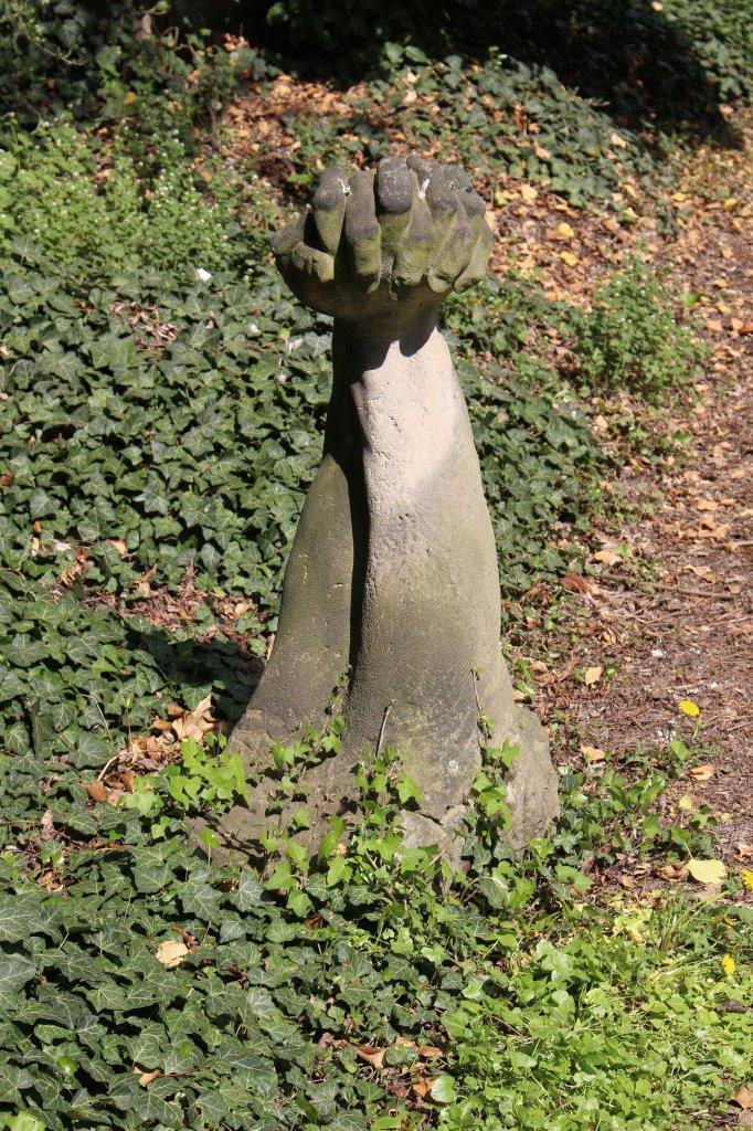 Plastika sepjatých rukou z dílny kamenosochaře Rudolfa Ducháčka