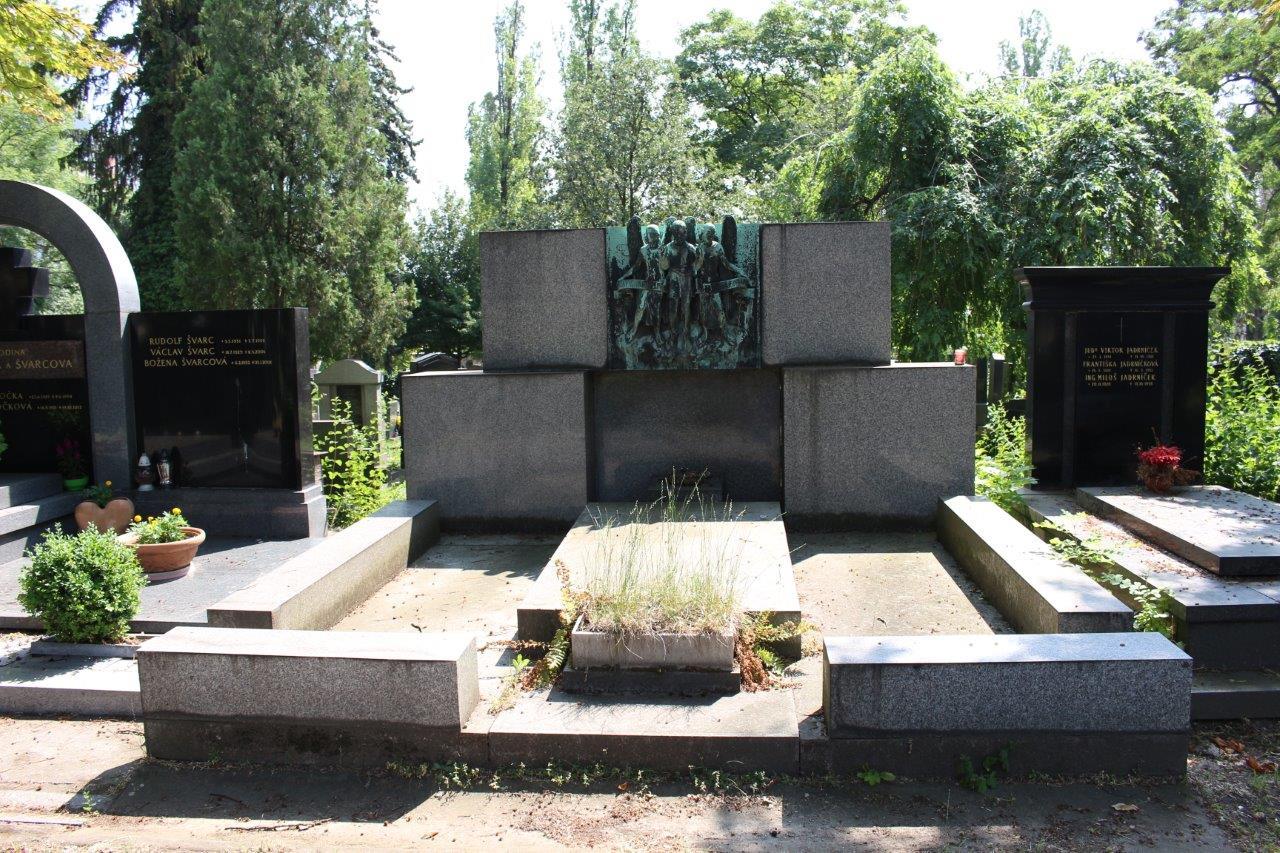 Reliéf na náhrobku je dílem sochaře a architekta Karla Štipla (1889–1972). Bohužel další výzdoba, včetně kovové nápisové desky a zřejmě i busty, byla v minulosti z hrobu odcizena.