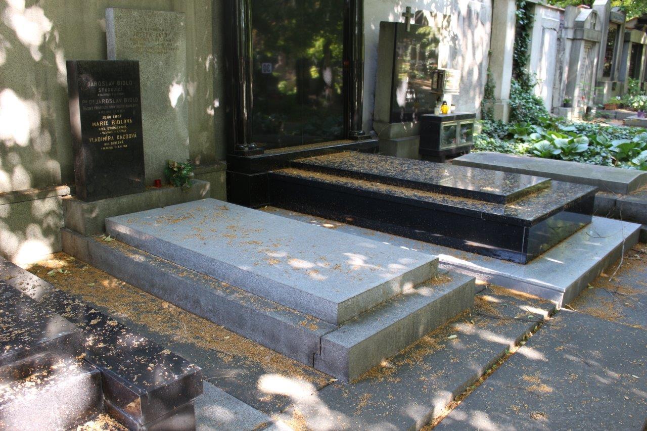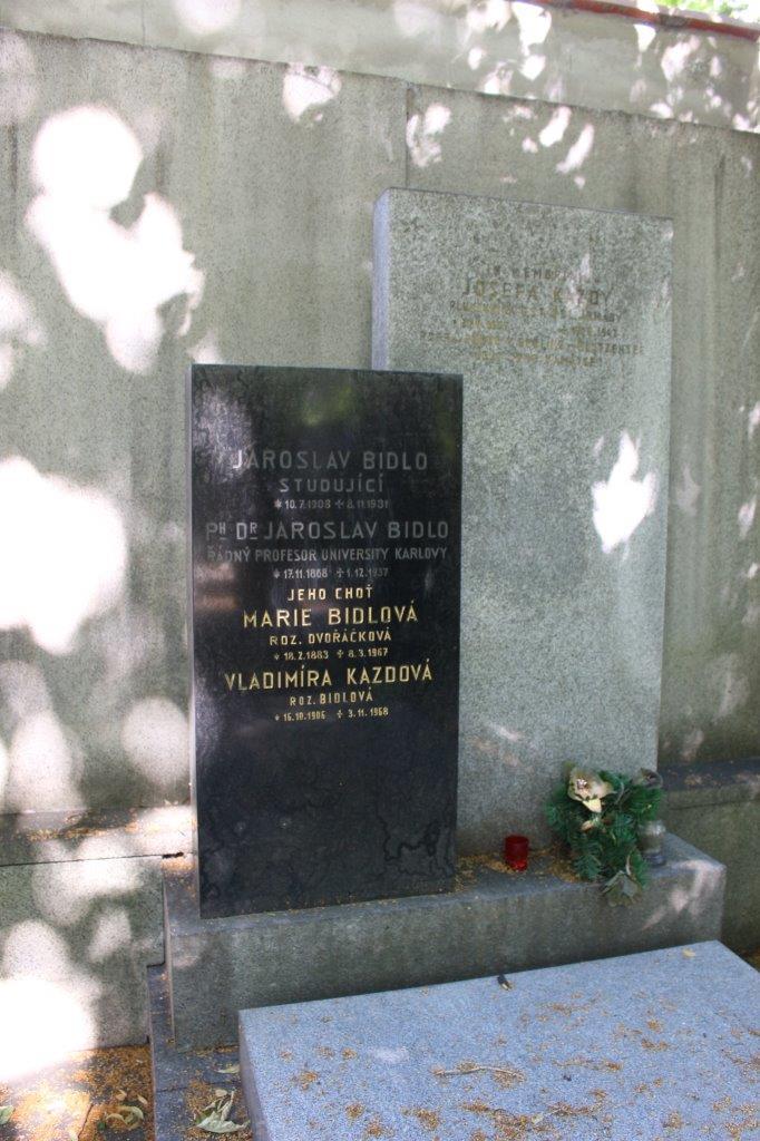 Náhrobek je také kenotafem Bidlova zetě Josefa Kazdy (21. 6. 1896 – 19. 8. 1942), plukovníka generálního štábu a hrdiny protinacistického odboje. Narodil se v Kbelnici u Jičína. Od roku 1912 studoval na dělostřelecké kadetní škole v Traiskirchenu. Po jejím absolvování byl roku 1915 převelen jako rakousko-uherský podporučík na frontu, kde sloužil v několika dělostřeleckých útvarech až do roku 1918, kdy se 17. 11. 1918 přihlásil jako nadporučík do nově vznikající Čs. armády. Prošel několika útvary. V letech 1925-1927 se stal posluchačem pražské Válečné školy. V roce 1936–1937 působil rok ve Francii u útvarů zbraní a štábů vyšších velitelství. Po návratu do vlasti byl převelen na Ministerstvo národní obrany k hlavnímu štábu armády ČSR. Po okupaci byl v roce 1939 propuštěn do civilu, ale okamžitě se zapojil do ilegální činnosti jako podnáčelník štábu a přednosta organizačního oddělení Zemského velitelství Obrany národa. Podílel se na řízení činnosti této organizace na západě Protektorátu. Pravděpodobně v prosinci 1939 byl spolu s dalšími zatčen gestapem a podroben brutálním výslechům. Byl vězněn na Pankráci, Gollnowě u Štětína a v Berlíně, kde byl spolu s ostatními členy Obrany národa 20. 11. 1941 odsouzen za velezradu k trestu smrti. Ten byl vykonán 19. 8. 1942 v Berlíně Plötzensee. Po osvobození byl Josefu Gazdovi posmrtně udělen Československý válečný kříž 1939 a byl povýšen do hodnosti plukovníka generálního štábu in memoriam.