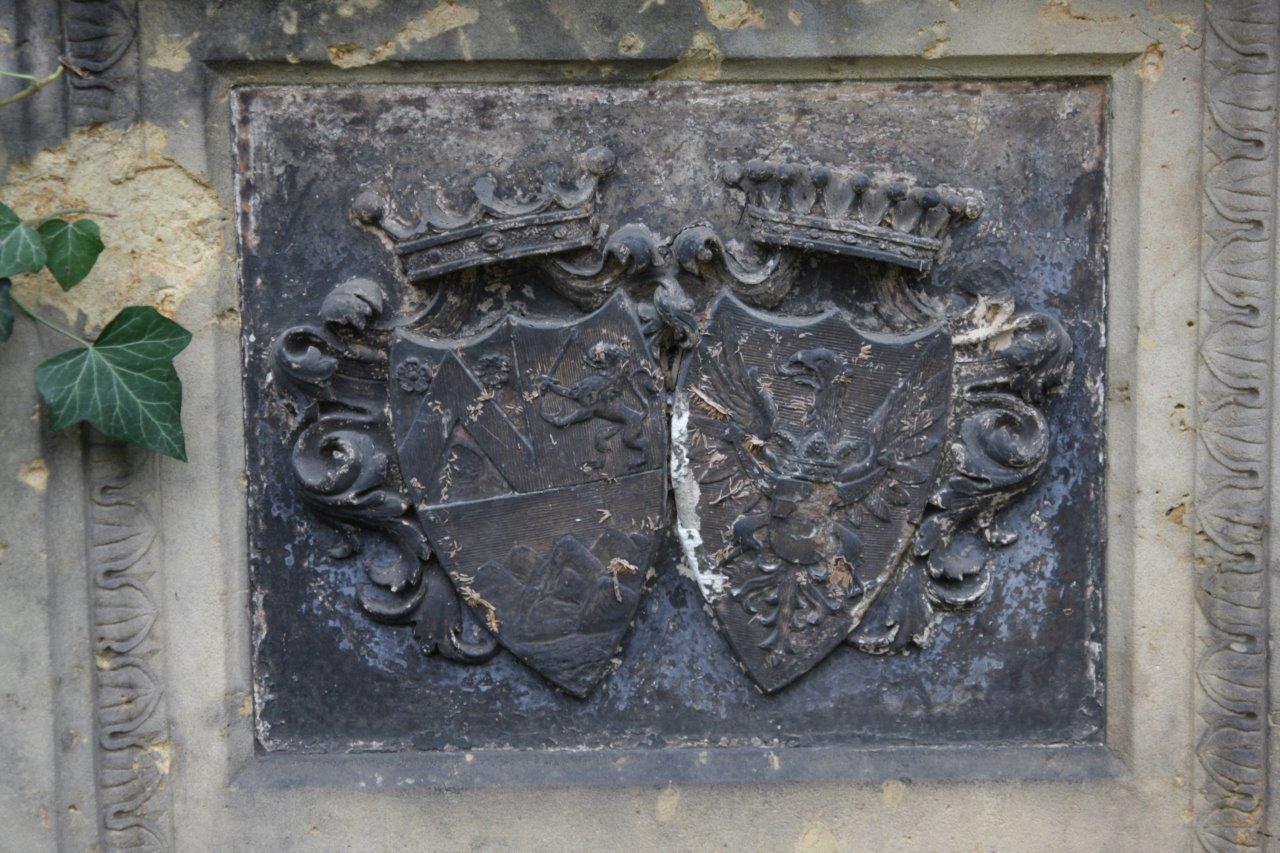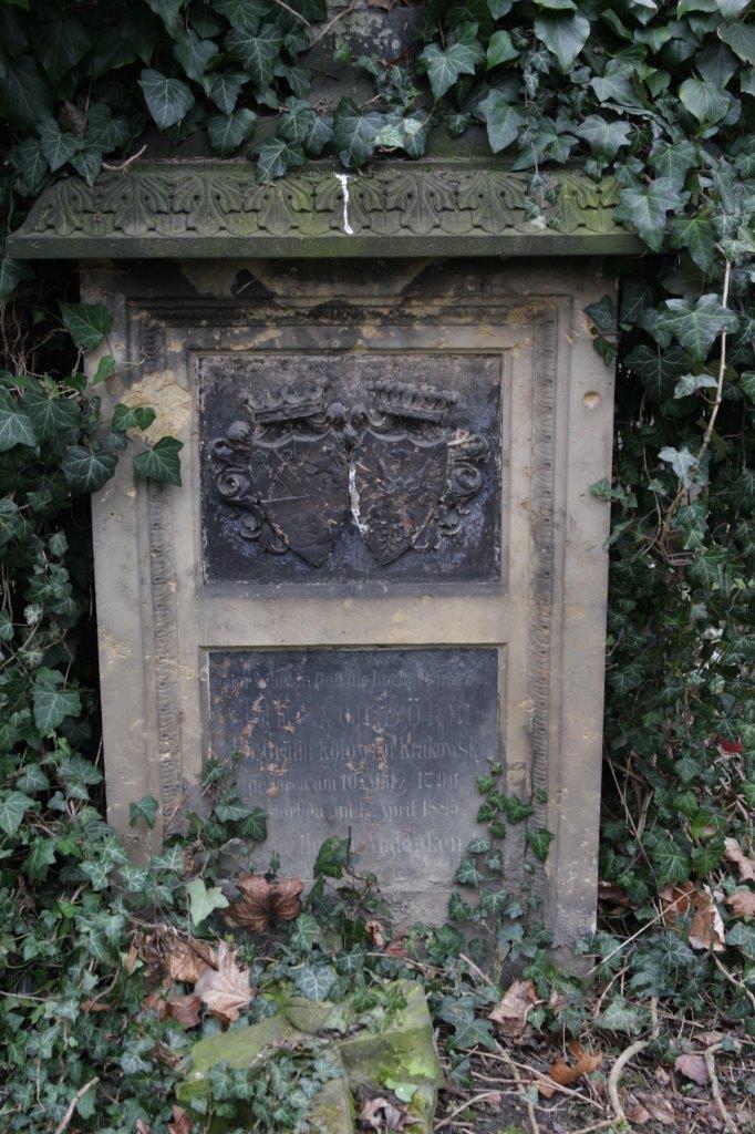 Hraběnka Julie Kolowrat Krakowská se podle dochovaných záznamů roku 1814 provdala v Hrobech za podplukovníka svobodného pána Františka von Böhma. Pískovcový náhrobek nese rodové erby obou manželů