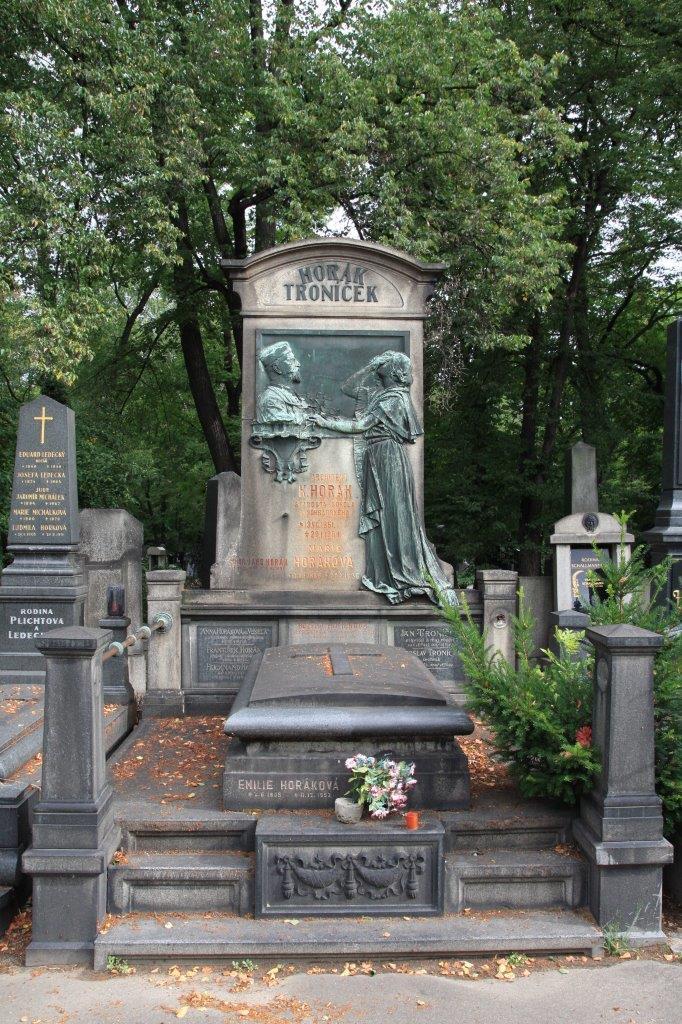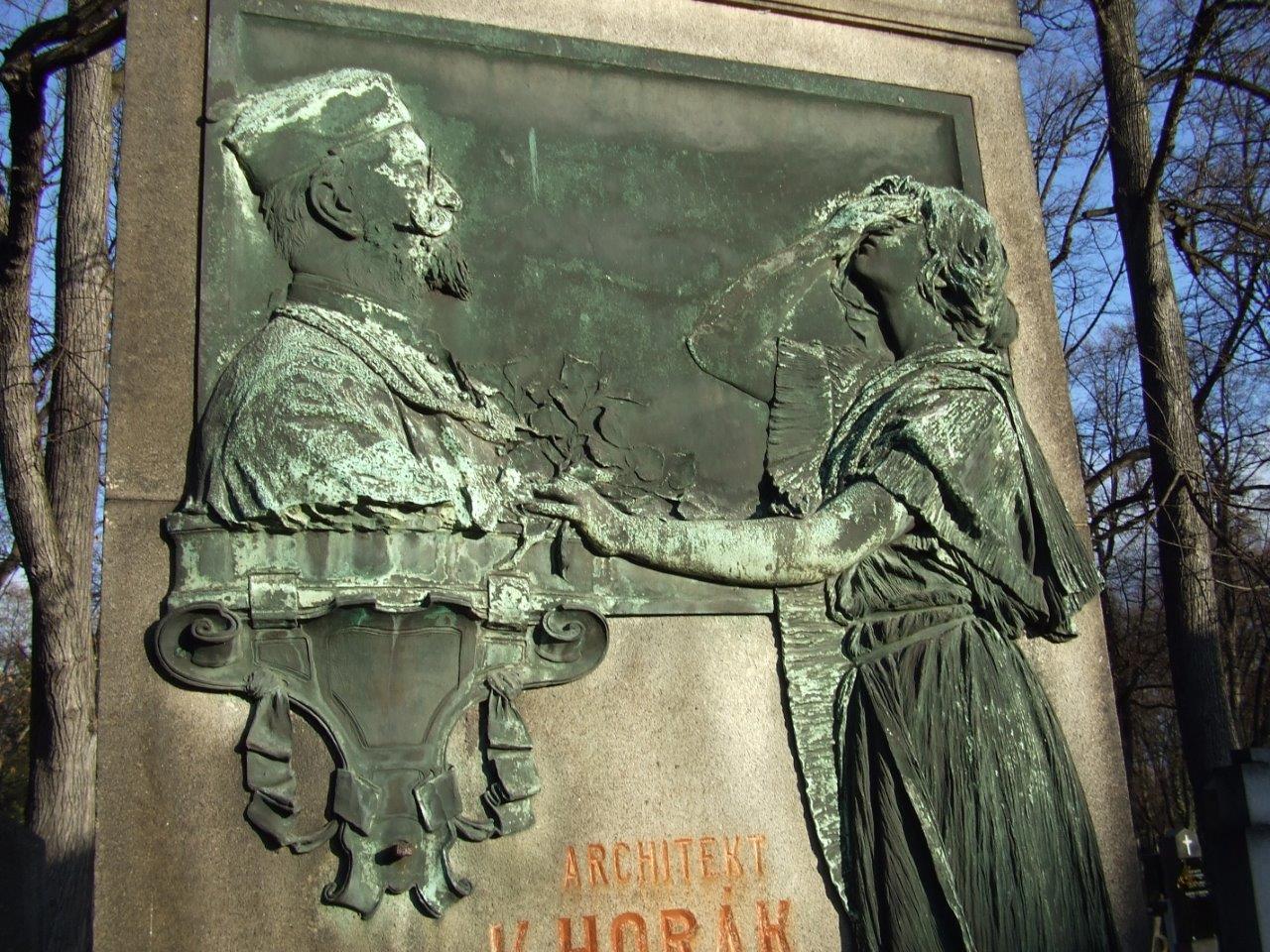 Karel Horák (13. 7. 1861 – 29. 1. 1904) byl architekt a stavitel. Narodil se v Praze. Byl mimo jiné projektantem Vinohradské nemocnice, kterou navrhl a postavil jako pavilonovou. Tato koncepce byla na svou dobu unikátní. Podílel se na stavbě Vinohradského divadla, postavil několik činžovních domů na Vinohradech, například č. p. 1199/35 v Římské ul. a dále vilu v Senohrabech. Působil také jako radní a místostarosta Královských Vinohrad. Podílel se na založení Sokola Vinohrady a byl zvoleni i jeho náčelníkem. Výzdoba hrobky je dílem sochaře Vilíma Amorta.