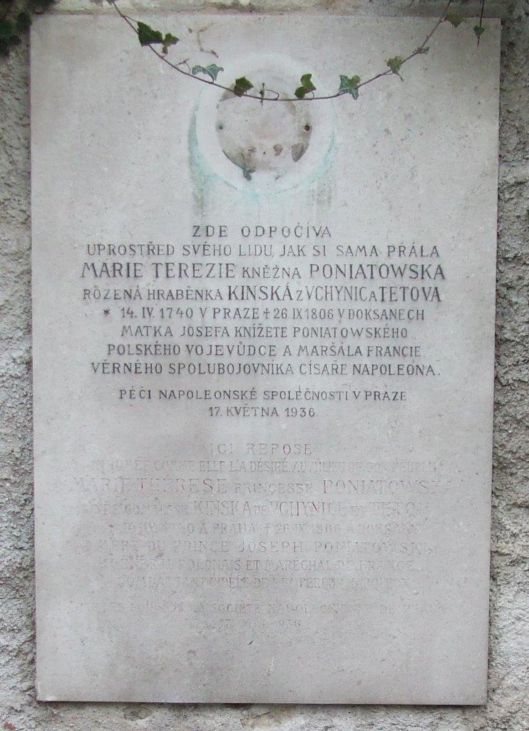Kněžna Marie Terezie Poniatowská, rozená Kinská z Vchynic a Tetova (14. 4. 1740 – 6. 9. 1806), dcera Leopolda Kinského, byla manželkou Ondřeje Poniatowského, rakouského generálního zbrojmistra a bratra posledního polského krále Stanislava Augusta. Šlo o velmi láskyplný svazek, kterému rodina Poniatowských dlouho nepřála z důvodu nepříliš dobrých majetkových poměrů nevěsty. Situaci vyřešil až důchod od ženichových bratrů. Z jejich manželství vzešli dcera Viktorie a syn Josef Antonín Poniatowský, který se později stal ministrem války velkoknížectví Varšavského a jako jediný cizinec i maršálem Francie. Za napoleonských válek padl v bitvě národů u Lipska 19. října 1813. Kněžna ve svých 33 letech ovdověla a poté se uchýlila nejprve ke svému bratru do Chroustovic. Od roku 1790 si pronajala doksanské panství, kde žila s dcerou Viktorií nejprve v budově prelatury a později zde nechala vybudovat malý zámeček Terespol. Po zbytek života pobývala střídavě na doksanském zámečku a v Praze.