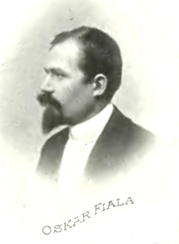 Oskar Fiala (11. 5. 1860 – 10. 3. 1918) byl malíř krajinář, grafik a pedagog. Narodil se v Praze v rodině úředníka. Na pražské akademii byl roku 1897 žákem Julia Mařáka v jeho krajinářské speciálce. Později studoval také v Paříži. Po svém návratu do Čech začal vyučovat jako odborný učitel kreslení v letech 1882–1883 v Líšnici, na průmyslové škole na Zbraslavi a později se stal ředitelem Měšťanské školy v Bubenči. Věnoval se jak krajinářství, tak grafice a ilustracím. Po roce 1901 se začal ve velké míře věnovat tvorbě ex libris. Za svého života se účastnil řady výstav. Jeho díla jsou zastoupena ve sbírkách olomouckého Muzea umění, Památníku národního písemnictví a v řadě soukromých sbírek.