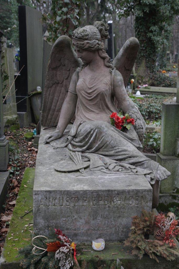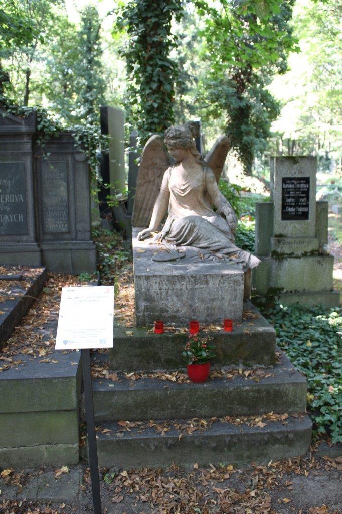 Pod náhrobkem z dílny sochaře Tomáše Seidana jsou uloženy ostatky otce a dcer Piepenhagenových, významných malířů.