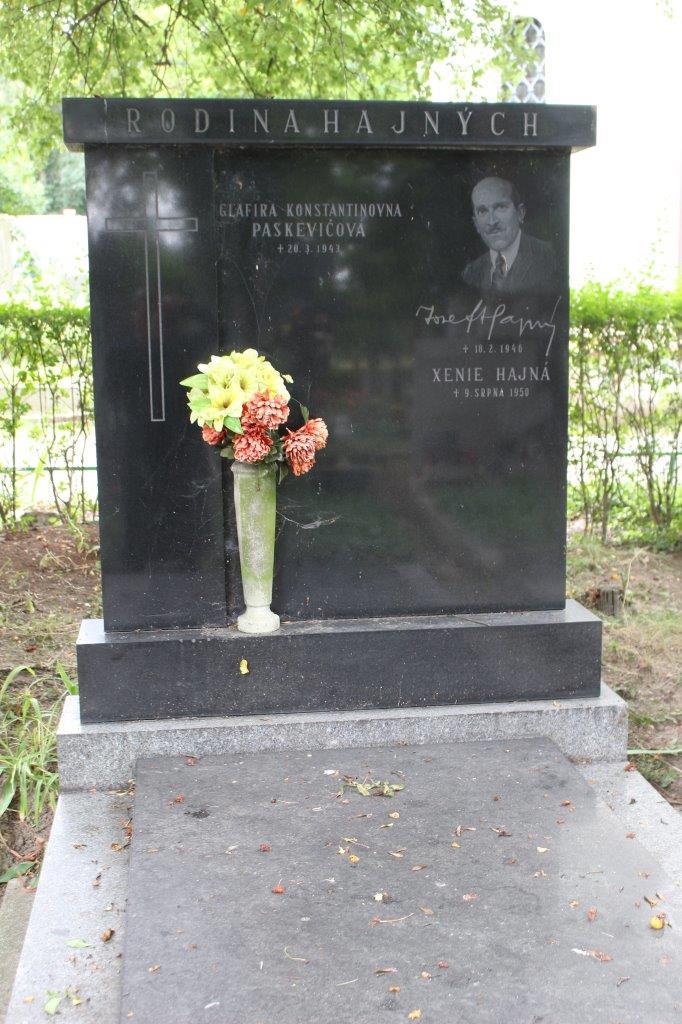 Josef Hajný (?? – 18. 2. 1946) byl ruský legionář, přítel brigádního generála Antonína Mikuláše Číly (1883–1983). Spolu s ním je zde pohřbena také jeho žena Xenie Hajná (?? – 16. 8. 1950), která pocházela z ruského Jekatěrinburgu a pojilo ji celoživotní přátelství manželkou generála Ninou Ivanovnou Čílovou, která odtud také pocházela.