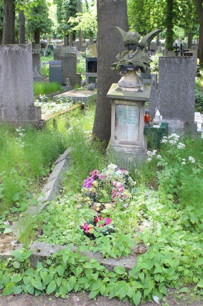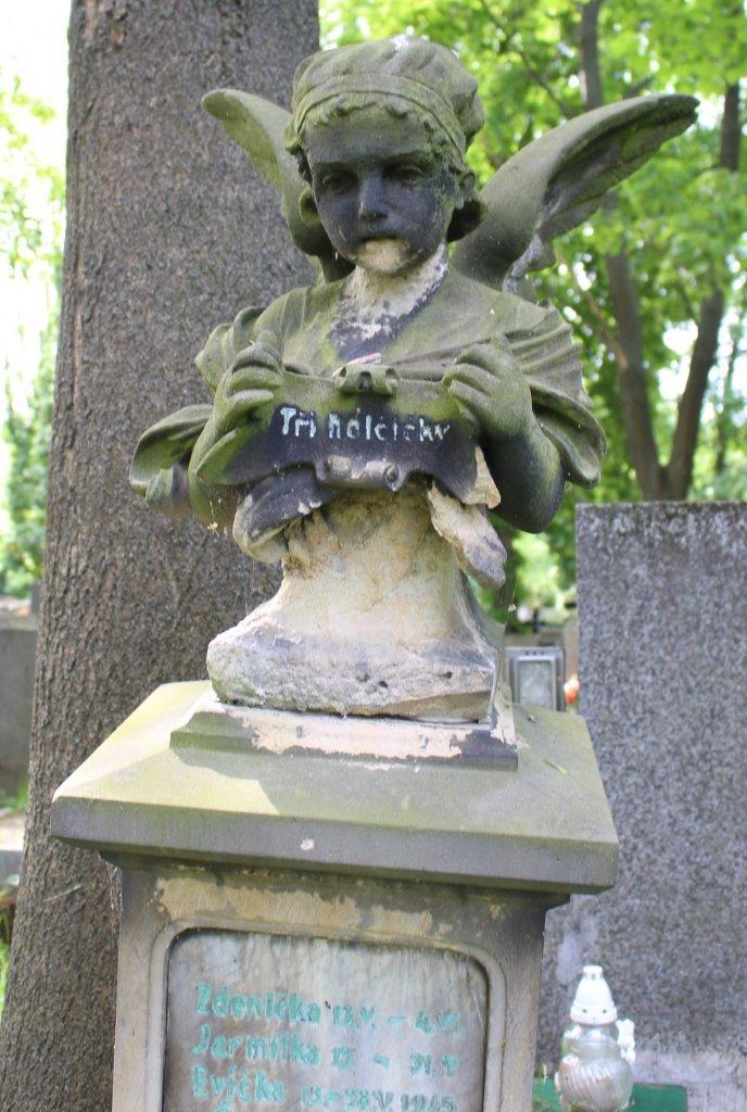 Pískovcový náhrobek s poprsím andílka označuje místo, kam byly v červnu roku 1945 uloženy urny s popelem novorozených trojčat Zdeničky, Jarmilky a Evičky Štenglových. Ty se narodily 13. května 1945. Evička zemřela 28. května, Jarmilka 31. května a Zdenička 4. června.
