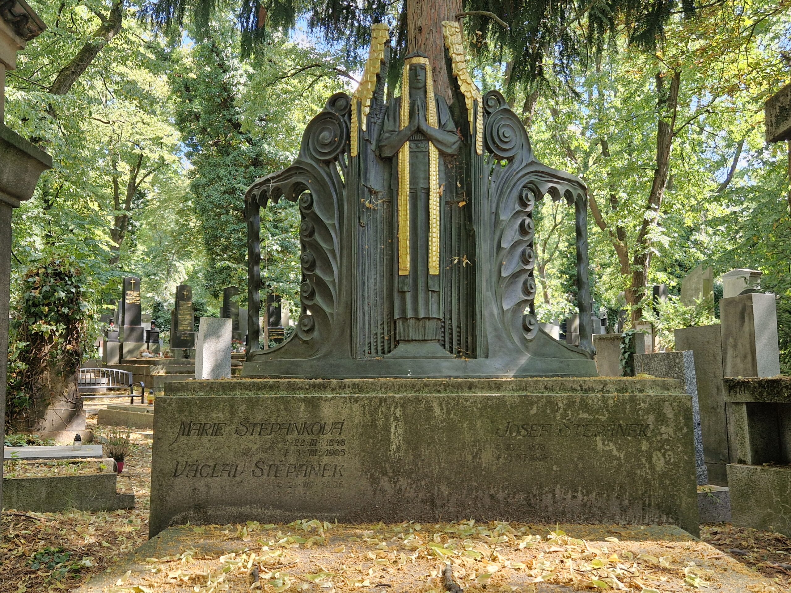 Náhrobek navrhl architekt Jan Kotěra pro rodinu pražského měšťana Václava Štěpánka, mlynáře a krupaře, majitele mlýna na dnešní Novotného lávce. Jako první v něm byla pohřbena jeho žena Marie (1848–1905).